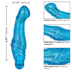 The Sparkle™ "G" Glitz™ vibrator delivers mind-blowing vibrations in a orgasmically curved package; With an easy-to-use vibration speed dial and waterproof design, this is an erotic toy box must-have for beginners and erotic adventurers alike. This high-powered massager is created with a flexible body to let you effortlessly control stimulation. Turn up the dial on the intense vibration motor and get playful as the vibe bends and flexes with your movements. Let your imagination run wild while the powerful vibrations buzz through the curved shaft. Increase the vibration intensity with the turn of a dial and send yourself spiraling into knee-shaking ecstasy. Whether you’re taking a dip with a lover or indulging in a steamy solo session, alluring adventure await you with this dazzling vibrator; Plunge into total ecstasy as this orgasmic vibe rubs, tickles and teases. The playful vibe is made from a smooth TPR plastic with sparkly glitter finish and ABS twist cap.